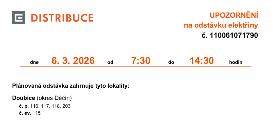 Odstávka elektřiny 6.3.2026 kolem Stavomontu